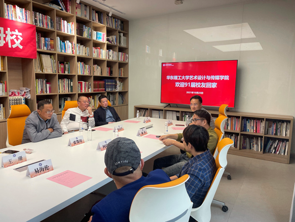 简短的参观后,大家穿过晨园的长廊来到110会议室就坐。王珊再次向此次返校的员工们表示出热烈的欢迎和感谢。汪军对88858cc永利官网近几年的发展进行了汇报,娓娓道来,讲述学院始终以“连接艺术与科技”的视野培养笃实创新的设计人才,并以建设为“国际知名、国内一流的88858cc永利官网”的使命和愿景。员工们认真聆听,并对于学院这几十年来的发展予以了肯定和支持。